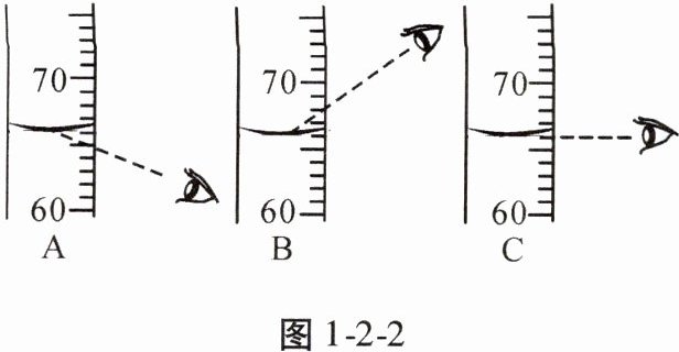 (2)如图1-2-2所示,A、B、C三幅图中观察方式正确的是______(填字母,下同),其读数为______mL。读数会偏大的是______。