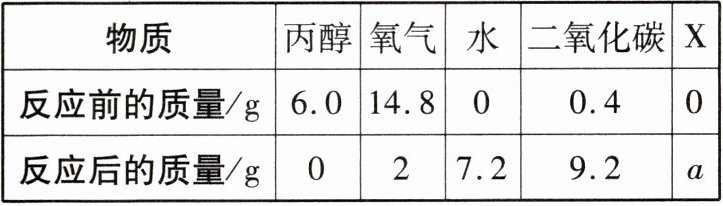 |物质|丙醇|氧气|水|二氧化碳|$X$|