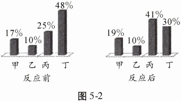 3. 密闭容器内有甲、乙、丙、丁四种物质,在一定条件下充分反应,测得反应前后各物质的质量分数如图 $5 - 2$ 所示。下列说法错误的是( )