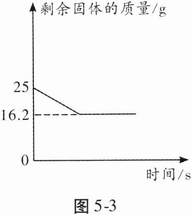 5. 工业上,煅烧石灰石可制生石灰和二氧化碳。某化学兴趣小组在实验室煅烧 $ 25 g $ 石灰石样品(样品中杂质不反应),煅烧过程中剩余固体的质量随时间的变化关系如图 5 - 3 所示。