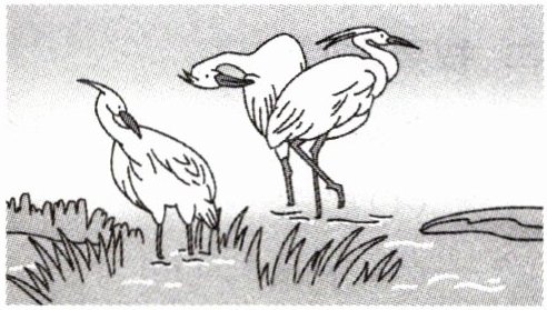 ①在清水田里,时有一只两只白鹭站着钓鱼,整个的田便成了一幅嵌在玻璃框里的画。田的大小好像是有心人为白鹭设计的镜匣。