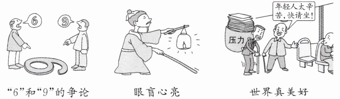 (1)观察下面的漫画,它们共同表达的主题是:______,指的是能够站在对方的角度思考问题,将心比心地为对方着想。