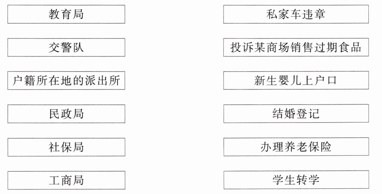 五、将国家机构和其职权范围内的事件连线