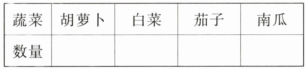 1. 胡萝卜:$10$;白菜:$6$;茄子:$3$;南瓜:$4$