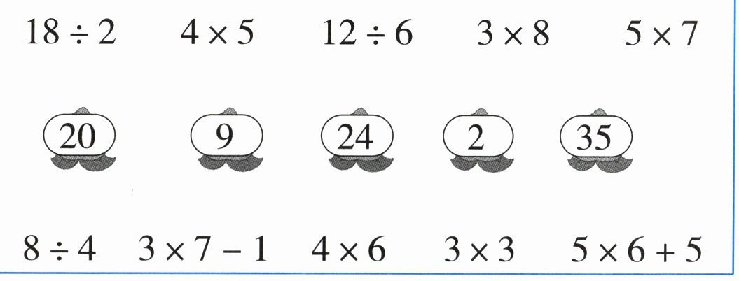 从左到右依次连(第一行和第二行对应连线):第一列连第二行第三列;第二列连第二行第一列;第三列连第二行第四列;第四列连第二行第二列;第五列连第二行第五列 。(以题目插图实际连线位置为准进行对应连接)