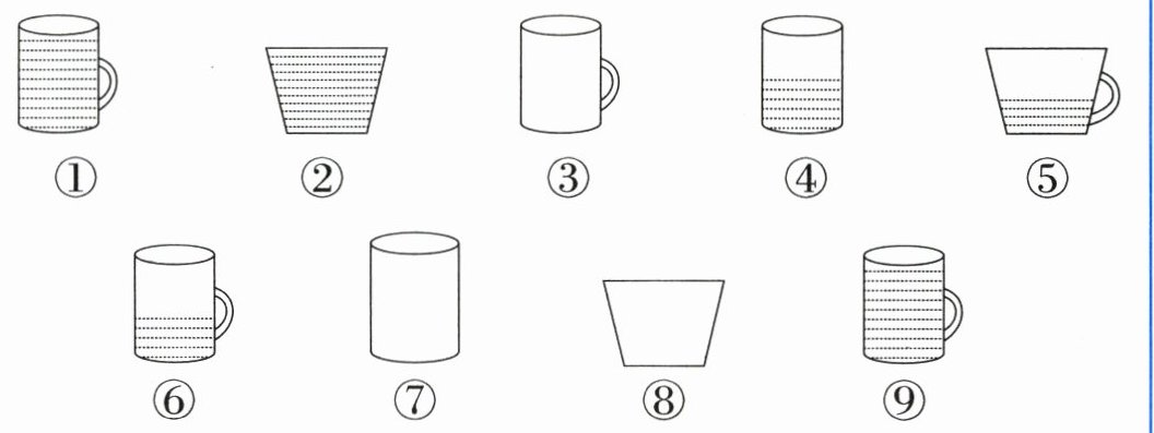 将下面的杯子分类,有多少种分法?请你写出来。