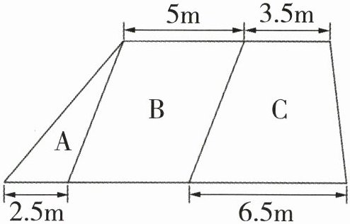 根据梯形面积公式$S=(a + b)h÷2$(其中$a$、$b$ 为上底和下底,$h$为高),可得$C$部分面积为$(3.5 + 6.5)×8÷2 = 40m^2$。