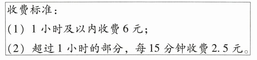 3. 某停车场的收费标准如下。张阿姨交了 21 元的停车费,她在这个停车场停了多长时间?(5 分)