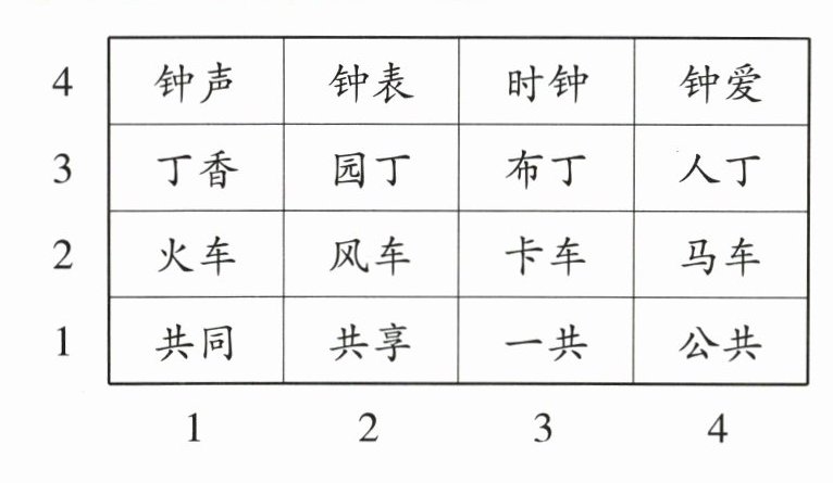 )表示。(2)数对(3,4)表示词语(
