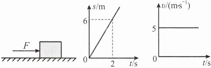5. (2025·陕西延安期末)物体在同一水平面上做匀速直线运动,当物体运动的路程与时间的关系图像如图甲时,受到的水平推力为$F_1$;当物体运动的速度与时间的关系图像如图乙时,受到的水平推力为$F_2$。两次推力的功率分别为$P_1$、$P_2$,则$F_1 : F_2和P_1 : P_2$分别为( )[img]