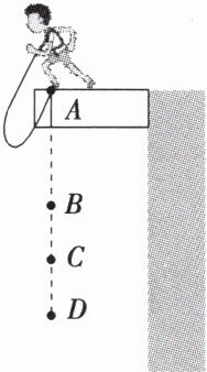 7. (2025·甘肃武威开学考试)蹦极是一项极限体育运动,如图所示,A点是最高点、B点为弹性绳自然伸长的位置,蹦极人在C点受弹性绳的弹力与自身所受重力相等,D点是能下落的最低点。在蹦极人从A点下落到D点的过程中,______点动能最大,在这个过程中,减小的重力势能都转化为______能,机械能______。(不计空气阻力)