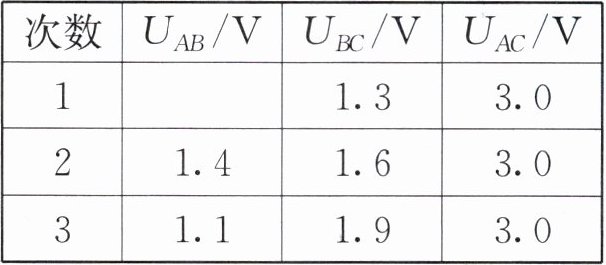 |次数| $ U_{AB}/V $| $ U_{BC}/V $| $ U_{AC}/V $|