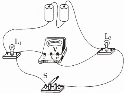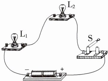 (1)小明连接的实物电路如图乙所示,电路中____(选填“电池”“开关”或“灯座”)安装错误。 $ L_1 $、$ L_2 $ 应该选择规格____(选填“相同”或“不同”)的小灯泡;