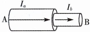 7. 物理观念 如图所示,A、B是串联在电路中的两段导线,它们的直径之比是3:1,通过A、B两段导线的电流分别为 $ I_a $ 和 $ I_b $,则 $ I_a $____(选填“<”“>”或“=”) $ I_b $。