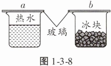 7. 如图1-3-8所示,常温下的两个烧杯分别盛有冰块和热水,上方均盖有一块玻璃,分别标注为a、b,过一会儿可明显看到(