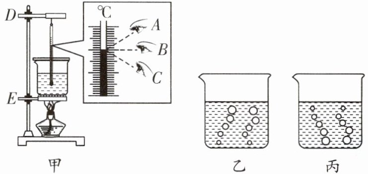 (选填“D”或“E”)部分。(2)图甲A、B、C三种读温度计示数的方法中正确的是