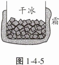 8. 如图1-4-5所示,把干冰(固态二氧化碳)放入铝罐里一段时间,罐外壁结了一层霜,“霜”形成的原因是
