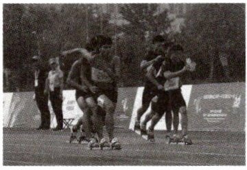 【典例2】(2024广西中考)如图2-1-1所示,2024年广西“民族体育炫”板鞋竞速比赛中,运动员看到广告牌向后退,所选择的参照物是(