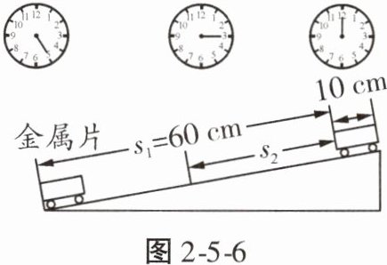 。如图2-5-6所示,该小车长度为10cm,停表每格为1s(转动未超过一周)。该次实验中,小车通过全程的平均速度$\overline{v}=$0.12