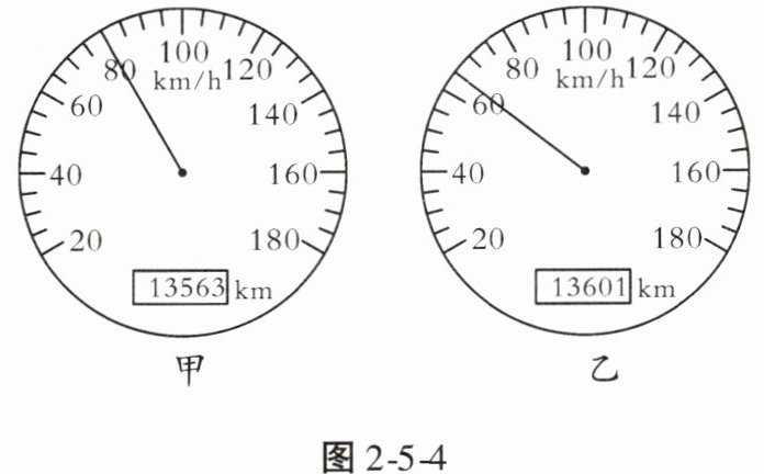 4. 国庆节期间,小昭一家驾车到红海滩游玩。在汽车行驶过程中,小昭观察了一下速度及里程表盘如图2-5-4甲所示,此时汽车的行驶速度为