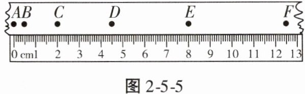 5. 如图2-5-5所示,小球在水平面上做直线运动,每隔0.2s记录一次小球的运动位置,则从C点运动到E点的过程中,小球通过的路程为