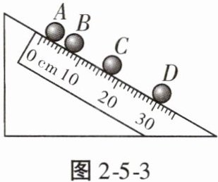 3. 小明在实验室中测小球在斜面上的平均速度。小球从斜面上由静止滚下,用照相机每隔0.1s拍摄一次,记录结果如图2-5-3所示,则下列说法正确的是(