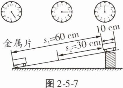 7. 图2-5-7为小明做“测量平均速度”的实验过程,图中的停表每格为1s(转动未超过一周)。下列说法正确的是(