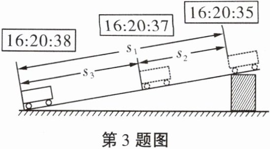 3. 小王在做“测量小车的平均速度”的实验。他已经从实验室借到的实验器材有小车一辆、停表一块、长木板一块、小木块一块。