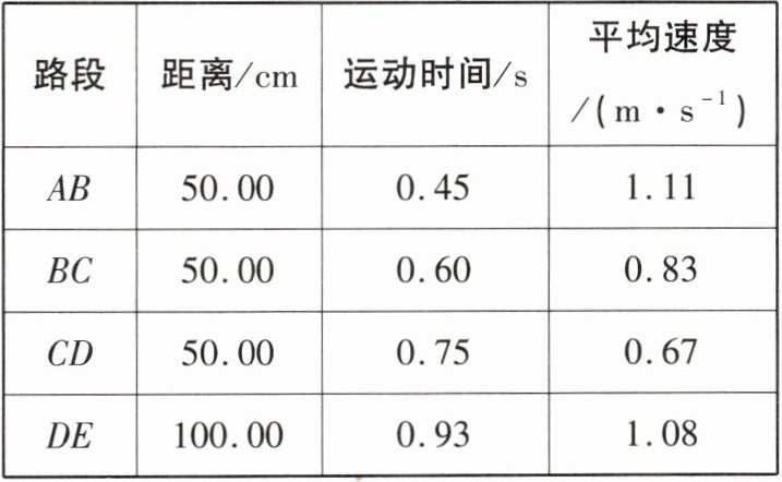 的测量误差较大,需多次测量。(3) 从$A$点开始计时,用电子停表分别测量小球经过$B$、$C$、$D$、$E$各点的时间。整理实验数据并记录在表中。