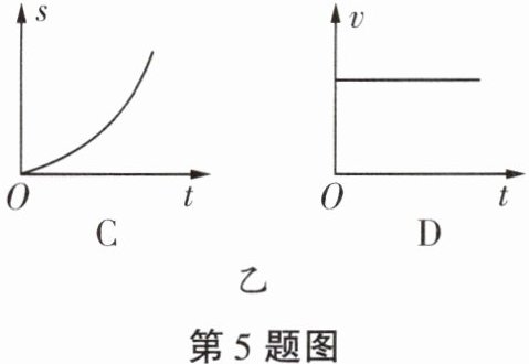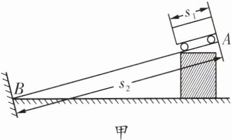5. 如图甲所示,测小车的平均速度时,测得小车从斜面的顶端由静止开始滑到底端所用时间为$t$,小车长为$s_{1}$,斜面长为$s_{2}$。