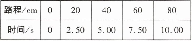 (1) 若测得气泡从玻璃管的底端运动到顶端的路程为$80cm$,所用的时间为$10s$,则这个过程中气泡的平均速度为.08$m/s$。