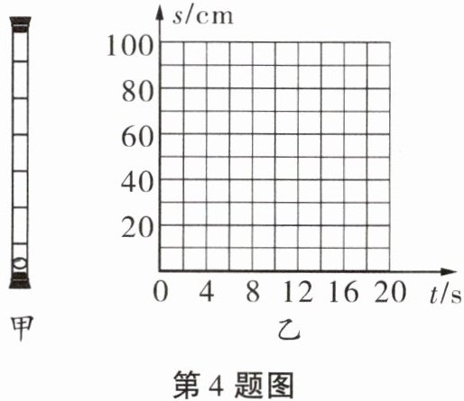 4. 如图甲所示,在“研究充水玻璃管中气泡的运动规律”的实验中: