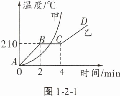 【典例2】图1-2-1为探究“固体熔化时温度的变化规律”时描绘的甲、乙两种物质温度随加热时间变化的图像。下列说法正确的是(