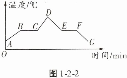 (1)在识别熔化(或凝固)图像时要注意:晶体的熔化(或凝固)图像有一段与时间轴平行的线段;非晶体的熔化(或凝固)图像则没有。(2)晶体的熔化(或凝固)图像中,与时间轴平行的线段对应的温度就是晶体的熔点(或凝固点)。(3)图1-2-2为某晶体的熔化和凝固图像。AB段是固态物质吸热升温的过程;BC段物质继续吸热,温度不变,正在熔化,物质处于固液共存状态,直到C点全部熔化成液态;CD段是液态物质继续吸热、温度不断升高的过程;DE段是液态物质放热降温的过程;EF段物质继续放热,温度不变,正在凝固,物质处于固液共存状态,直到F点全部凝固成固态;FG段是固态物质继续放热、温度不断降低的过程。