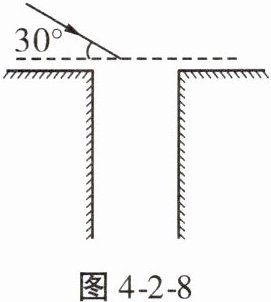 11. 小明想用一块平面镜使与水平面成30°角的太阳光竖直射入井中。请在图4-2-8中画出平面镜的位置,并标出镜面与水平面夹角的度数。