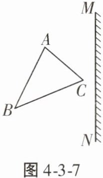 9. 请在图4-3-7中画出三角形ABC在平面镜MN中所成的像。