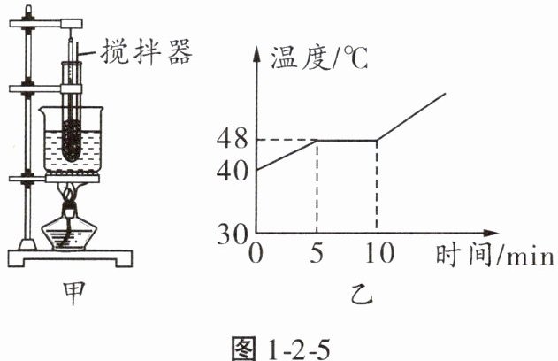 (写出一条即可)。(2)待温度升高到40℃开始,每隔1min记录一次温度计的示数,根据记录的数据得到图1-2-5乙所示图像,则该晶体的熔点是
