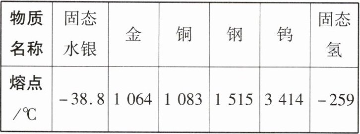7. 根据表中所列的几种物质的熔点,判断下列说法错误的是(