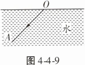 11. 一束光从空气斜射入水中,水中的折射光线OA如图4-4-9所示,请画出入射光线的大致方向。