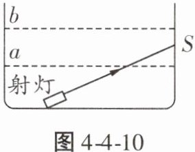 12. 某校新建成一个喷水池,在池底安装有一只射灯。池内无水时,射灯发出的一束光照在池壁上,在S点形成一个亮斑,如图4-4-10所示。往池内注水,水面升至a位置时,站在池旁的人看到亮斑的位置在P点;如果水面升至b位置时,人看到亮斑的位置在Q点,则(