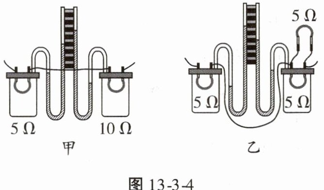 2.在探究“电流通过导体产生热量的多少跟什么因素有关”的实验时,实验装置如图13-3-4所示,四个透明容器中密封着等量的空气。下列说法正确的是(