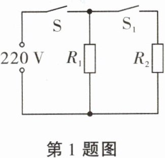 1.解:当S、S₁闭合时,R₁、R₂并联;当S闭合,S₁断开时,电路为R₁的简单电路。因为并联电路的总电阻小于各支路的电阻,所以由P=UI=U²/R可知,R₁、R₂并联时,电路中的电阻最小,电功率最大,电饭锅处于加热挡;电路为R₁的简单电路时,电路中的电阻最大,电功率最小,电饭锅处于保温挡。