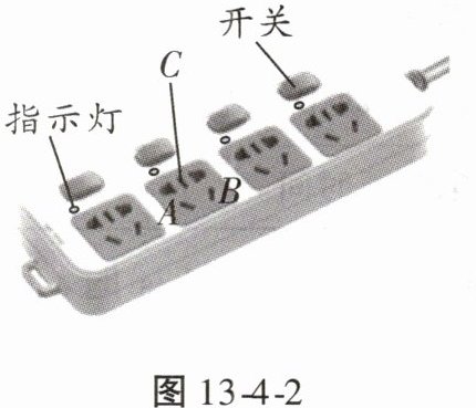 【典例3】如图13 - 4 - 2所示是常用的插线板,闭合开关,指示灯发光,且插孔可以提供工作电压。下列说法正确的是(