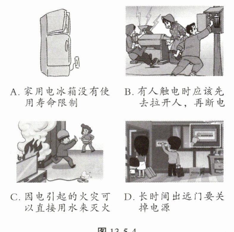 解题关键 家用电器都有使用期限;当有人触电或发生电火灾的时候,要先断开电源再施救;生活用水是导体;长时间出远门要关掉电源,以防发生短路引起火灾。