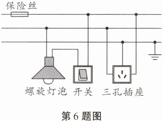 6. 如图所示是小园家电路的一部分。她闭合开关时螺旋灯泡正常发光,在将电饭锅的插头插入插座中时,灯泡突然熄灭,检查时发现保险丝熔断了。原因可能是 (