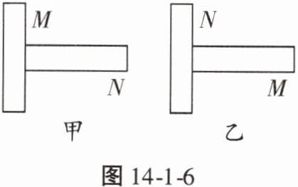 9. 有外形相同的两根钢条M、N,按图14-1-6甲、乙两种方式接触时,它们之间都有较大的吸引力。下列推断正确的是(