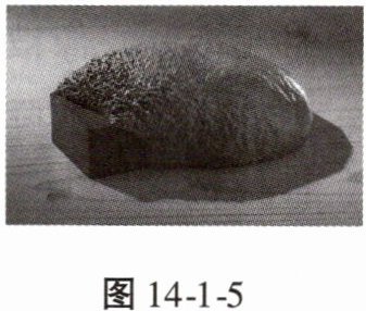 8. 现在有一种爱“吞”磁体的橡皮泥。把一强磁体放在它旁边,强磁体会被慢慢“吞噬”,如图14-1-5所示。强磁体被“吞噬”的原因是橡皮泥中含有