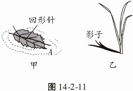 的作用下,静止后指向南北。参照冬季午间小草的影子偏向北方,如图14-2-11乙所示,进一步推测回形针A端是回形针磁体的S