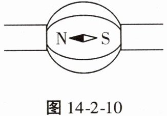 7. 在图14-2-10中,请根据静止小磁针的指向,标出两个磁极的极性及磁感线方向。