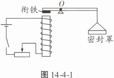 【典例1】酿酒坊里的发酵罐配有笨重的密封装置,为了方便操作,小明设计了一个用杠杆和电磁铁组合实现升降的密封罩,如图14-4-1所示,其中电磁铁的工作原理是